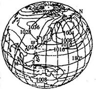 56.若中心圆圈代表太阳,地球位于甲处时,发生频率较大的自然现象是