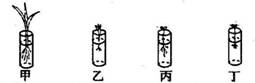 16.选取甲、乙、丙、丁四个大小相同的容器,甲、丙瓶装入土壤浸出液,乙、丁瓶装进蒸馏水,装置如图所示。甲生长良好的原因可能是