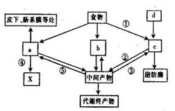 A.图中 a、b、c依次表示甘油和脂肪酸、葡萄糖、氨基酸