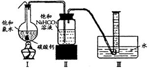 在圆底烧瓶底部,有一用塑料网包住的过量块状碳酸钙和150mL饱和氯水,按如图所示装置实验,待不再产生气泡后,将塑料网中剩余的石灰石提出液面,密封后再加热、煮沸烧瓶中的液体,直到量筒中的气体不再增加。