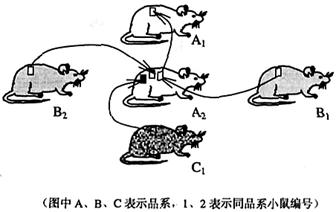 (二)(12分)用A、B、C三个纯种品系的小鼠进行皮肤移植实验。移植时,在某小鼠背部切除部分皮肤,将其他个体的皮肤移植上去,实验过程如右图所示。请据图回答下列问题。