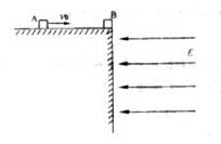 ,A与B相碰撞后,两物块立即粘在一起,并从台上飞出。已知在高台边缘的右面空间中存在水平向左的匀强电场,场强大小