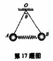 17.如图所示,A、B两球完全相同,质量均为m,用两根等长的细线悬挂在O点,两球之间连着一根劲度系数为k的轻质弹簧,静止不动时,两根细线之间的夹角为θ。则弹簧的长度被压缩了 ( )
