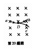 带电液滴a、b在匀强磁场中做匀速圆周运动(不计重力和它们相互间的电场力),在D点相向正碰结合成为一个整体c,继续做圆周运动,碰撞前后轨迹如图所示( )