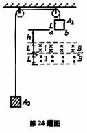 24.(19分)如图所示,轻绳绕过轻滑轮连接着边长为L的正方形导线框A1和物块A2,线框A1的电阻为R,质量为M,物块A2的质量为m(M>m),两匀强磁场区域I、II的高度也为L,磁感应强度均为B,方向水平与线框平面垂直。线框ab边距磁场边界高度为h。开始时各段绳都处于伸直状态,把它们由静止释放,ab边刚穿过两磁场的分界线CC进入磁场II时线框做匀速运动。求: