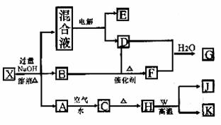 27.(13分)有一化合物X,其水溶液为浅绿色,可发生如下的转化关系(部分反应物、生成物从略)。其中B、D、E、F均为无色气体,W、K为常见的金属单质,C为难溶于水的红褐色固体。在混合液中加入BaCl2溶液可生成不溶于稀盐酸的白色沉淀,H和W反应可放出大量的热。