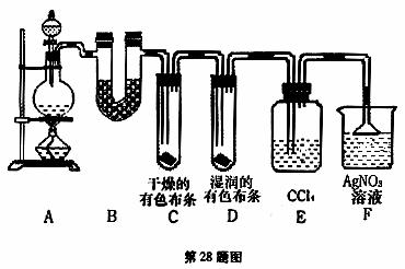 28.(16分)某校化学实验兴趣小组为了探究在实验室制备Cl2的过程中有水蒸气和HCl挥发出来,同时证明氯气的某些性质,甲同学设计了如下图所示的实验装置(支撑用的铁架台省略),按要求回答问题。