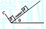 的光滑斜面上有两个用轻质弹簧相连接的物块A、B,它们的质量分别为mA、mB,弹簧的劲度系数为k,C为一固定挡板。系统处一静止状态,现开始用一恒力F沿斜面方向拉物块A使之向上运动,求物块B刚要离开C时物块A的加速度a和从开始到此时物块A的位移d,重力加速度为g。