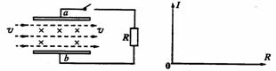 磁流体发电机示意图如图所示,a、b两金属板相距为d,板间有磁感应强度为B的匀强磁场,一束截面积为S,速度为v的等离子体自左向右穿过两板后速度大小仍为v,截面积仍为S,只是等离子体压强减小了。设两板之间单位体积内等离子的数目为n,每个离子的电荷量为q,板间部分的等离子体等效内阻为r,外电路电阻为R。求: