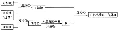 Ⅱ(13分)甲、乙、丙为三种常见短周期元素,它们的原子序数依次增大,已知甲元素原于最外层电子数比乙元素原子的多一个,乙元素原于最外层电子数与其电子层数相等,丙元素原子最外层电子数是乙元素原子最外层电子数的2倍。物质A、B属于钠盐,物质C是一种强酸;又知:A中含乙元素,B中含甲元素,C中含丙元素。各种物质之间的相互转化关系如下图所示(部分产物未给出)