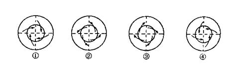 下图中,符合南极大陆极地东风、南半球气旋、我国台风、 我国江淮地区的伏旱示意图的顺序是 ( )