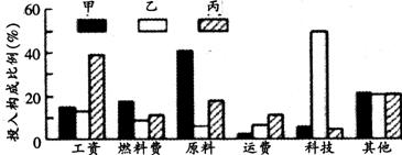 图5中甲、乙、丙反映了三类工厂的投入构成情况,据此回答75题