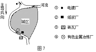75.从环境保护角度看,图7中四个工厂布局比较合理的是