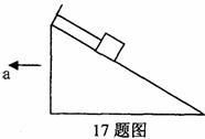 17.如图所示,质量为m的物体用平行斜面的细线连接置于倾角为θ的光滑斜面上,若斜面向左做加速运动,当物体刚脱离斜面时,它的加速度的大小为 ( )