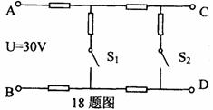 18.如图所示的电路中,每个电阻的阻值都为R,A、B两端间的电压为30V,那么( )