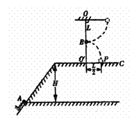 25.(24分)如图所示,在同一竖直平面上,质量为小球A静止在光滑斜面的底部,斜面高度为H=2L,小球受到弹簧的弹力作用后,沿斜面向上运动,离开斜面后,达到最高点时与静止悬挂在此处的小球B发生弹性碰撞,碰撞后球B刚好能摆到与悬点O同一高度,球A沿水平方向抛射落在水平面C上的P点,O点的投影O′与P的距离为L/2,已知球B质量为m,悬绳长L,视两球为质点,重力加速度为g,不计空气阻力,求: