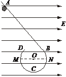 如图所示,在光滑、绝缘的水平桌面上固定放置一光滑、绝缘的挡板ABCD,AB段为直线挡板,BCD段是半径为R的圆弧挡板,挡板处于场强为E的匀强电场中,电场方向与圆直径MN平行。现有一带电量为q、质量为m的小球由静止从挡板内侧上的A点释放,并且小球能沿挡板内侧运动到D点抛出,则