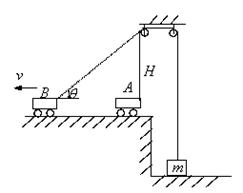 正下方,绳子的端点A离滑轮的距离是H。车由静止开始向左作匀加速的运动,过了时间t绳子与水平方向的夹角是θ,如图的所示。