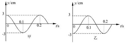 一列简谐横波沿x轴传播,甲、乙两图分别为传播方向上相距3m的两质点的振动图象,如果波长大于1m,则波的传播速度大小可能为: