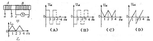 紧靠在一起的线圈 A 与 B 如图甲所示,当给线圈 A 通以图乙所示的电流(规定由“进入 b 流出为电流正方向)时,则线圈 B 两端的电压变化应为下图中的