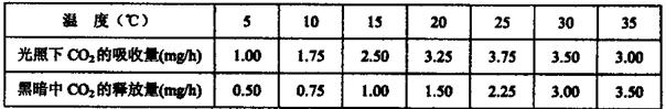 5.将一株盆栽玉米放在特定的实验装置内,研究温度对光合作用与呼吸作用的影响(其余的实验条件都是理想的),实验以CO2的吸收量与释放量为指标。实验结果如下表所示:
