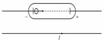 如图,在阴极射管正下方平行放置一根通有足够强直流电流的长直导线,且导线中电流方向水平向右,则阴极射线将会