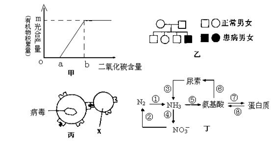 ④丁图中,完成①过程的生物可能是某些细菌、放线菌、蓝藻,是需氧型生物