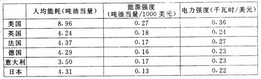 下表是世界主要发达国家能源强度对比情况(能源强度:一次能源供应总量与国内生产总值的比率。电力强度:单位产值所消耗的电能,它反映了经济增长率与电力消费之间的关系)。表中直接反映出
