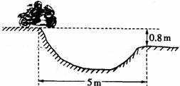 在水平路上骑摩托车的人,遇到一个壕沟,如图,摩托车的速度至少要有多大,才能越过这个壕沟?(取