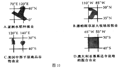 74. 图10中表示的农业地域类型正确的是