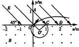 速度方向与x轴正方向成450角,在磁场中运动时由