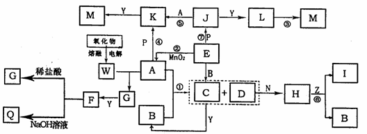 28.(16分)下图中,A为气体非金属单质,D是空气中含量最多的气体,B、E、Z为无色氢化物,其中B、E为有刺激性气味的气体,C是由三种短周期非金属元素组成的离子化合物,F、I、L为白色沉淀,N、P、W是金属单质,P为目前应用最广泛的金属;反应②在E的浓溶液中进行,反应⑦在E的稀溶液中进行,反应②、⑦均可用于实验室制取某种气体(图中部分反应物和生成物没有列出)