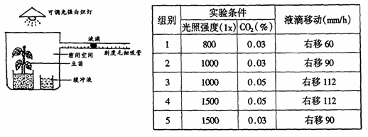 (3)若在1组和2组之间增加一组实验,光强为8001x,CO2浓度为0.05%。预期这一条件下装置中液滴向右移动的范围是在___________mm/h之间。