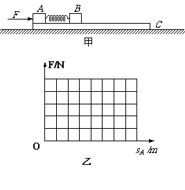 (2)若弹簧的劲度系数为k=200N/m,以作用力F为纵坐标,A移动的距离为横坐标,试在图乙的坐标系中作出推力F随A位移的变化图线。(直接作图,不必写出推导过程)