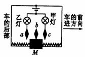 某仪器内部的电路如图所示,其中M是一个质量较大的金属块,左右两端分别与金属丝制作的弹簧相连,并套在光滑水平细杆上,a、b、c三块金属片的间隙很小(b固定在金属块上)。当金属块处于平衡时两根弹簧均处于原长状态。若将该仪器固定在一辆汽车上,则下列说法中正确的是