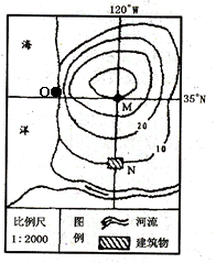 右下图为某地等高线(单位:米)示意图,图中O是一观海平台,M是一旅游景点,N处是观景楼,MN的图上距离为2厘米。读图回答69-70题