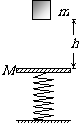 (20分)如图所示,质量为M=0.8 kg的铁板固定在一根劲度k=100 N/m的轻弹簧上方,铁板的上表面保持水平,弹簧下端固定在水平地面上,系统处于静止状态。在铁板中心正上方有一个质量为m=0.2 kg的小木块,从离铁板上表面高h=0.8 m处自由下落,木块碰到铁板后与铁板一起向下运动。已知弹簧的弹性势能与弹簧的劲度k和形变量x都有关,且