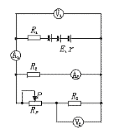 22.某同学按下图所示电路进行实验,实验时该同学把变阻器的触片P移到不同位置时测得各电表的示数如下表所示,将电压表内阻看作无限大,电流表内阻看作零.