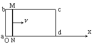 24.如图所示,矩形导线框abcd固定在水平面上,ab=L、bc=2L,整个线框处于竖直方向的磁感应强度为B的匀强磁场中。导线框上ab、cd段电阻不计,bc、ad段单位长度上的电阻为λ。今在导线框上放置一个与ab边平行且与导线框接触良好的金属棒MN,其电阻为r(r<λL)。金属棒在外力作用下沿x轴正方向做速度为v的匀速运动,在金属棒从导线框最左端(x=0)运动到最右端的过程中: