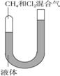 (12分))如下图所示,一端封闭的U形管,封闭的一端有CH4和Cl2的混合气体,U形管中的液体不参与反应,也不溶解反应物和生成物。使CH4和Cl2的混合气体(体积比1∶3充入)在可见光照射下缓慢反应一段时间。