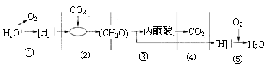 43. 如图是光合作用和呼吸作用的关系简图,其中只发生在生产者体内、可发生在各种细胞内的依次是