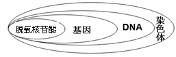 44. 下图是细胞核内的染色体、DNA、基因、脱氧核苷酸四种物质的关系,错误的是
