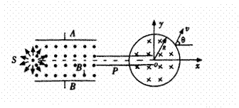 、速度大小和方向都不同的粒子,当有粒子从圆形磁场区域射出时, 其速度方向与
