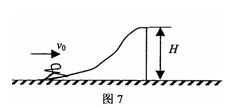 (15分)如图(7)所示,摩托车演员作特技表演,当到达高台底端时关闭油门,从底端以初速度v0=20m/s冲上顶部水平的高台,然后从顶部水平飞出(不计空气阻力),摩托车和人落到缓冲垫上(图中未画出),摩托车落地速度大小为
