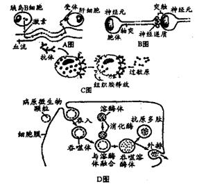(4)D图是单核巨噬细胞吞噬过程示意图。图中的“抗原多肽”应是经过处理后暴露出来的 ,它将被直接呈递给 从而激活特异性免疫系统。