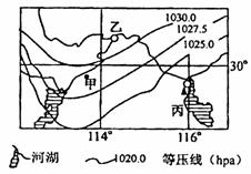 右图是我国某地冬季等压线分布图,判断71-72题。