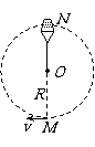 如图所示的是杂技演员表演的“水流星”。一根细长绳的一端,系着一个盛了水的容器。以绳的另一端为圆心,使容器在竖直平面内做半径为R的圆周运动。N为圆周的最高点,M为圆周的最低点。若“水流星”通过最低点时的速度