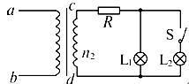 20.如图所示,理想变压器的原线圈a、b两端接正弦交流电压,副线圈c、d两端通过输电线接两只相同的灯泡L1、L2,输电线的等效电阻为R,当开关由原来的闭合状态变为断开