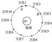 位于轨道上的A、B两位置,卫星按顺时针运行。地球表面重力加速度为g,地球的半径为R,不计卫星间的相互作用力。求卫星1由A位置运行到B位置所需要的时间。