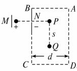 ×10-3 s,磁场方向变化一次.粒子到达P点时出现的磁场方向指向纸外,在Q处有一静止的中性粒子,P、Q间的距离s=3.0 m,PQ直线垂直平分AB、CD。已知d=1.6 m,带电粒子的比荷为1.0×104 C/kg,不计重力.求: